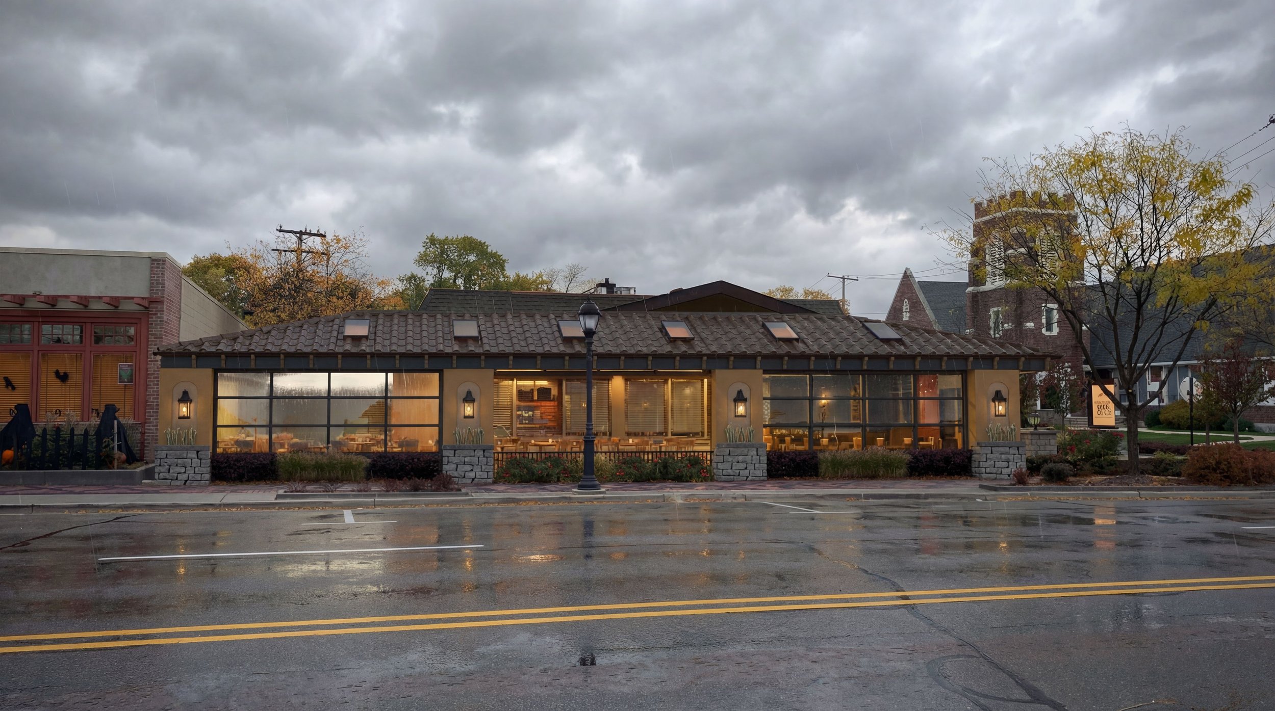 This rustic dining environment embraces warmth, texture, and authenticity through natural materials and simple, time-honored forms. Wood, earth-toned finishes, and a gabled roof create a welcoming atmosphere that feels both grounded and intimate. Designed to encourage gathering and connection, the space balances traditional character with a relaxed, contemporary dining experience.